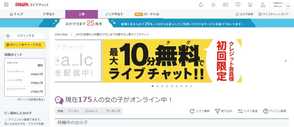 | 2ショットチャット | 150ポイント/分 |