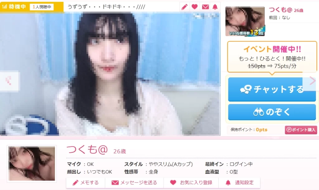 ポイントが消費される前に待機画面で女の子の雰囲気を確認できるので、プロフ写真とイメージが違ったなどの失敗はありません。