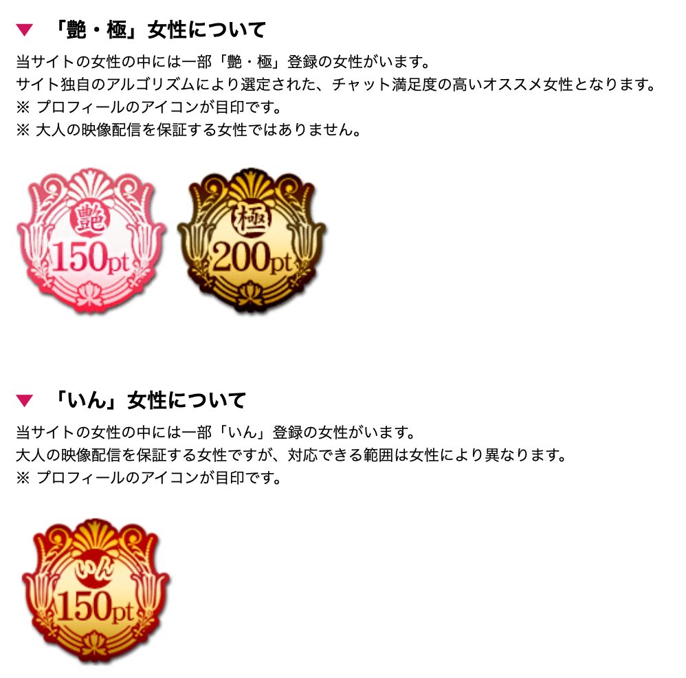 | 2ショットチャット | 250ポイント/分 |