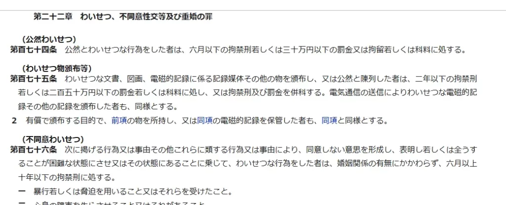 オナニーを誰かに見せるのは、場所や相手によって罪になる場合もあるので要注意です。刑法174条には、「6月以下の拘禁刑若しくは30万円以下の罰金又は拘留若しくは科料に処する」と定められています。
