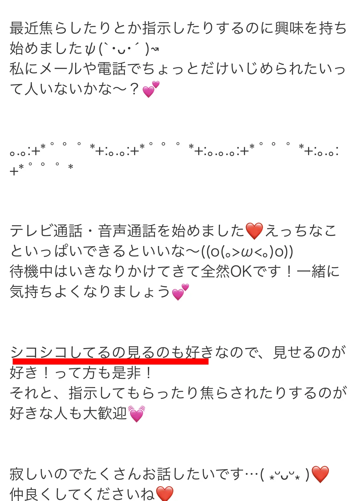 上記のように検索機能を活用すれば、メル友・テル友などを探している人を効率よく探せます。後は気になる子にメッセージを送信して、エロトークからオナニーを見てもらえるか打診するだけです。